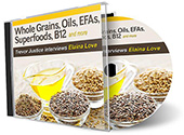 Commitment Bonus #5: Whole Grains, Oils, EFAs, Superfoods & B12 Chef Elaina Love explains how to keep olive oil from breaking down when making stir fries, how to get enough B12, and how to supercharge the protein in sunflower and pumpkin seeds. She also reveals 5 vegan super foods high in absorbable protein, the dangers of heated Canola oil, and which oils can withstand up to 345 degree temperatures. |
